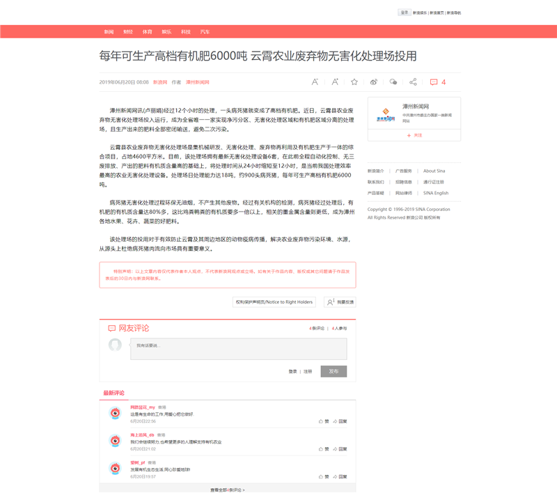 2019年9月5日,福建省委機關報《福建日報》發(fā)布題為“讓病死豬變身有機肥”的新聞報道,將我司雷建強總經(jīng)理主導研發(fā)病死豬無害化設備的創(chuàng)業(yè)故事作為雙創(chuàng)代表的先進事跡進行宣傳報道。